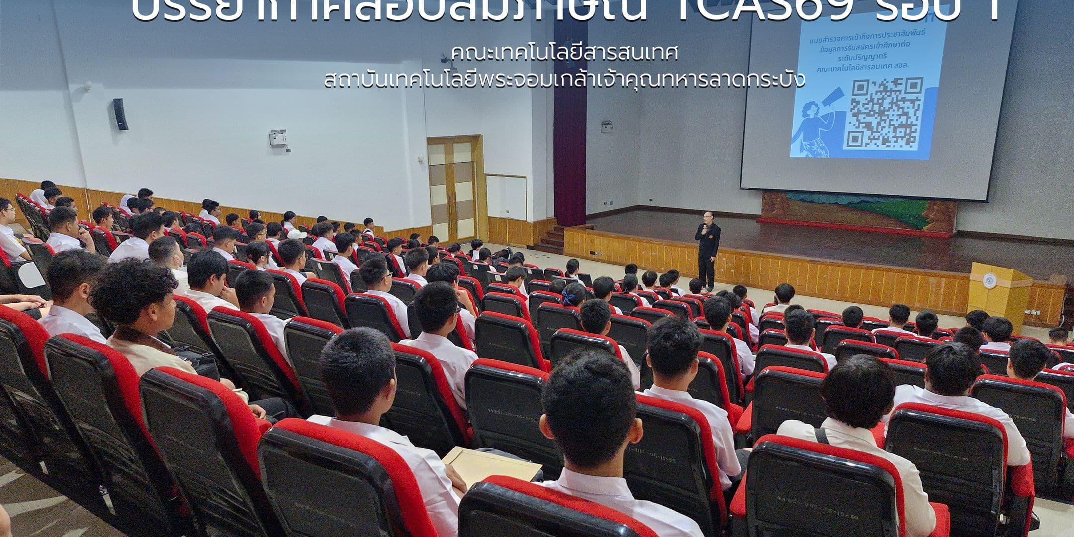 วันนี้ 21 กุมภาพันธ์ 2569 คณะเทคโนโลยีสารสนเทศ สจล. จัดสอบสัมภาษณ์ TCAS69 รอบ 1 แฟ้มสะสมผลงาน (Portfolio) บริเวณห้องบรรยายชั้น 1 ของคณะ โดยในช่วงเช้า ได้รับเกียรติจาก รองศาสตราจารย์ ดร. วรพจน์ กรีสุระเดช คณบดีของคณะฯ ได้กล่าวต้อนรับ ทักทายน้อง ๆ นักเรียนจากโรงเรียนต่าง ๆ ที่เข้ามาสอบพร้อมทั้งอวยพรและให้กำลังใจแก่น้องๆ นักเรียนที่เข้าร่วมการสอบในครั้งนี้ ณ หอประชุมใหญ่ (Auditorium) ชั้น 1 ของคณะซึ่งจัดไว้เป็นห้องพักรับรองของนักเรียนที่มาสอบ