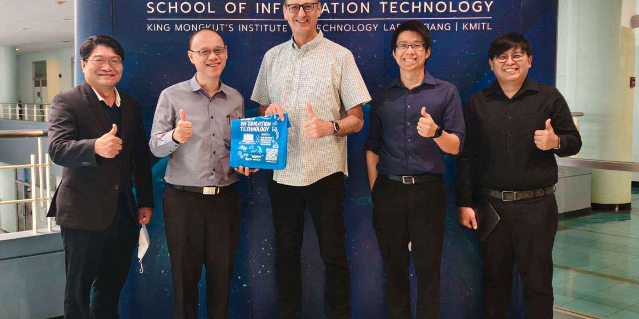 เมื่อวันที่ 11 กุมภาพันธ์ 2569 ผูู้บริหารคณะเทคโนโลยีสารสนเทศ สจล. นำโดย รองศาสตราจารย์ ดร. วรพจน์ กรีสุระเดช คณบดี ศาสตราจารย์ ดร. กิติ์สุชาต พสุภา รองคณบดี รองศาสตราจารย์ ดร. กันต์พงษ์ วรรัตน์ปัญญา รองคณบดี และ ดร. อิสสระพงศ์ ค้วนเครือ รักษาการแทนหัวหน้าศูนย์ความเป็นเลิศทางเทคโนโลยีเชิงลึก ร่วมพูดคุยหารือเกี่ยวกับความร่วมมือทางวิชาการในการทำโครงการวิจัยร่วมกัน กับ Professor Dr. Jonathan Garibaldi รองอธิการบดี University of Nottingham Ningbo China