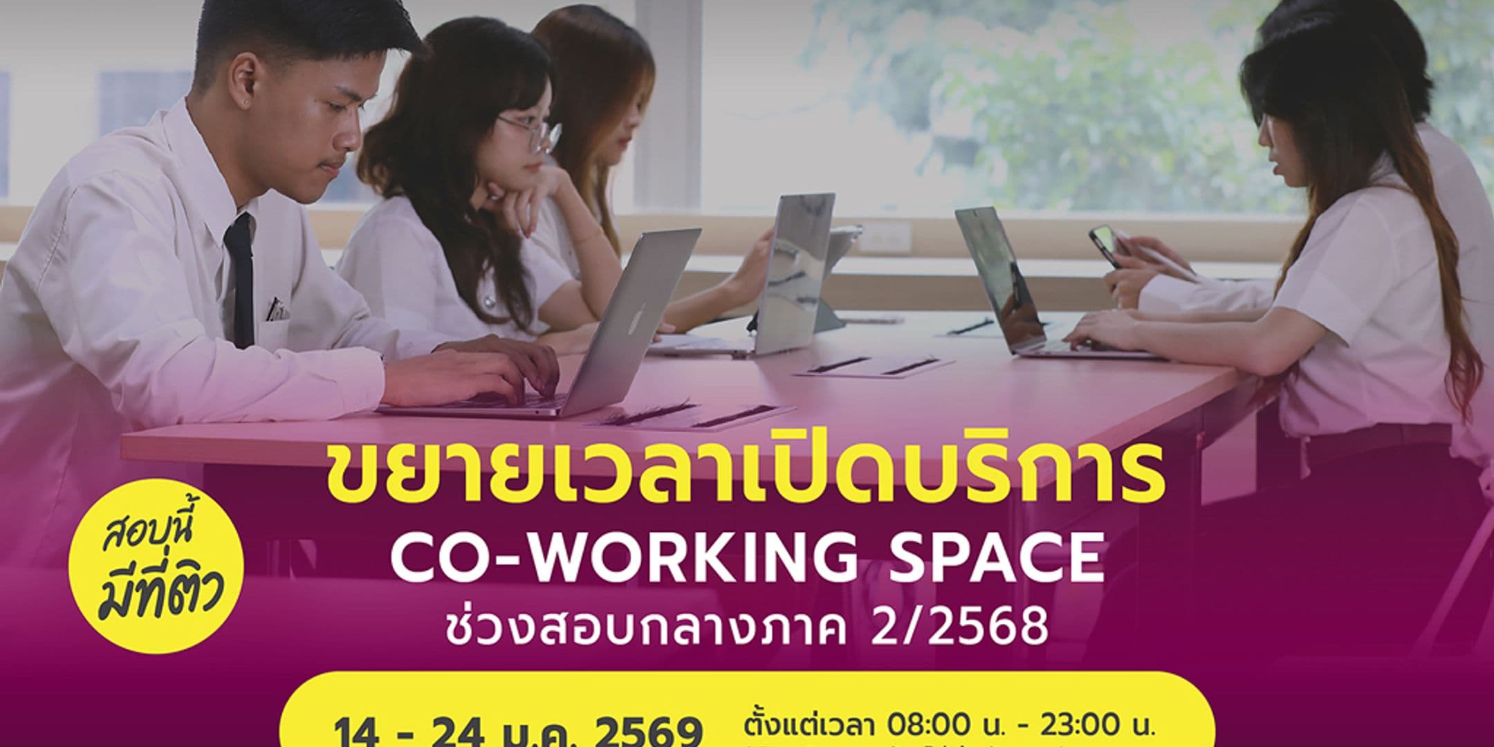 ช่วงสอบกลางภาค 2/2568 นี้ คณะเทคโนโลยีสารสนเทศ สจล. ขยายเวลาให้บริการ Co-working Space สำหรับนักศึกษาคณะไอทีลาดกระบัง 🥳