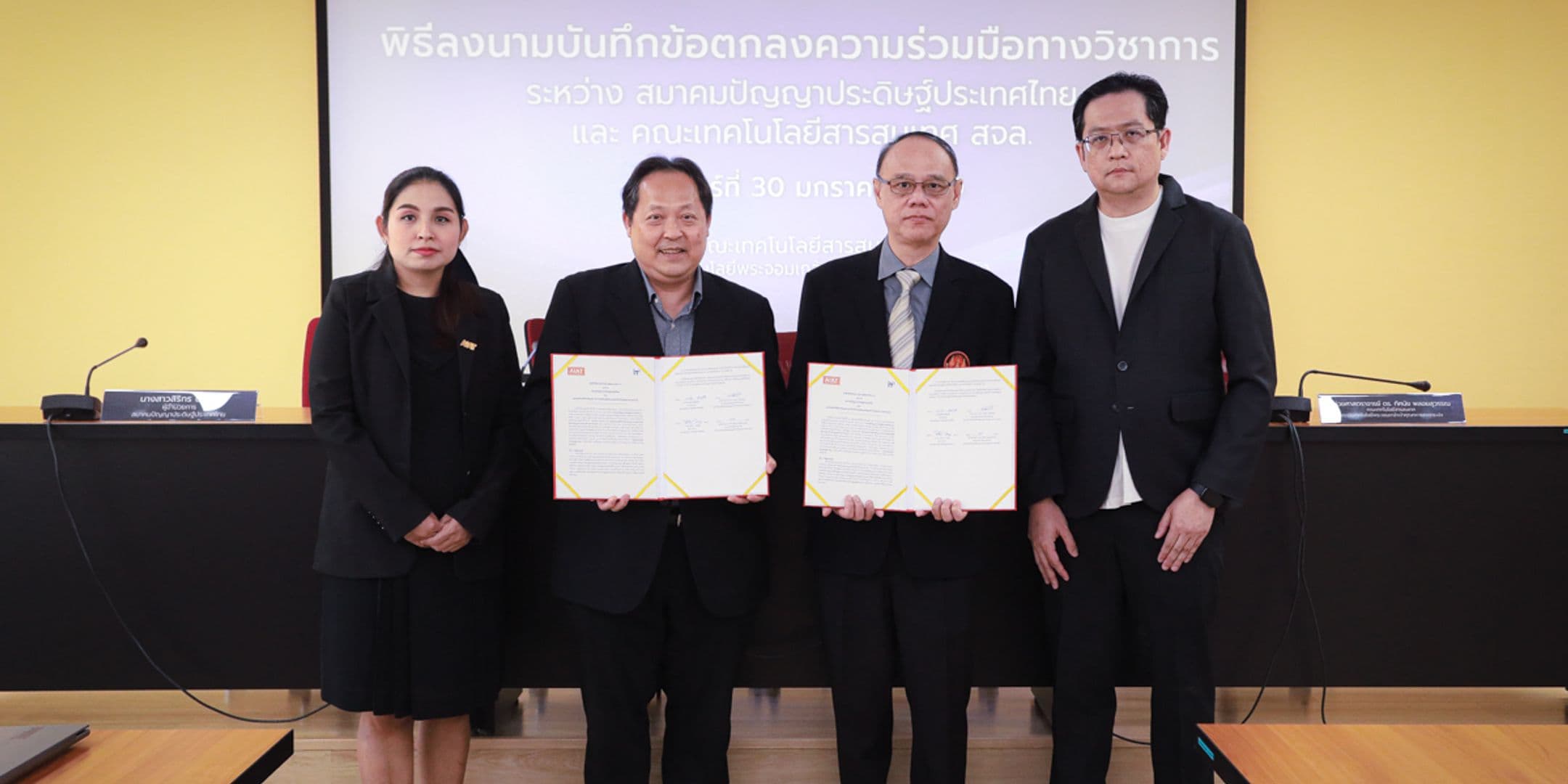 เมื่อวันที่ 30 มกราคม 2569 คณะเทคโนโลยีสารสนเทศ สถาบันเทคโนโลยีพระจอมเกล้าเจ้าคุณทหารลาดกระบัง จัดพิธีลงนามความร่วมมือทางวิชาการด้านปัญญาประดิษฐ์ ร่วมกับ สมาคมปัญญาประดิษฐ์ประเทศไทย (Artificial Intelligence Association of Thailand: AIAT) ณ ห้องประชุม 614 ชั้น 6 ของคณะฯ
