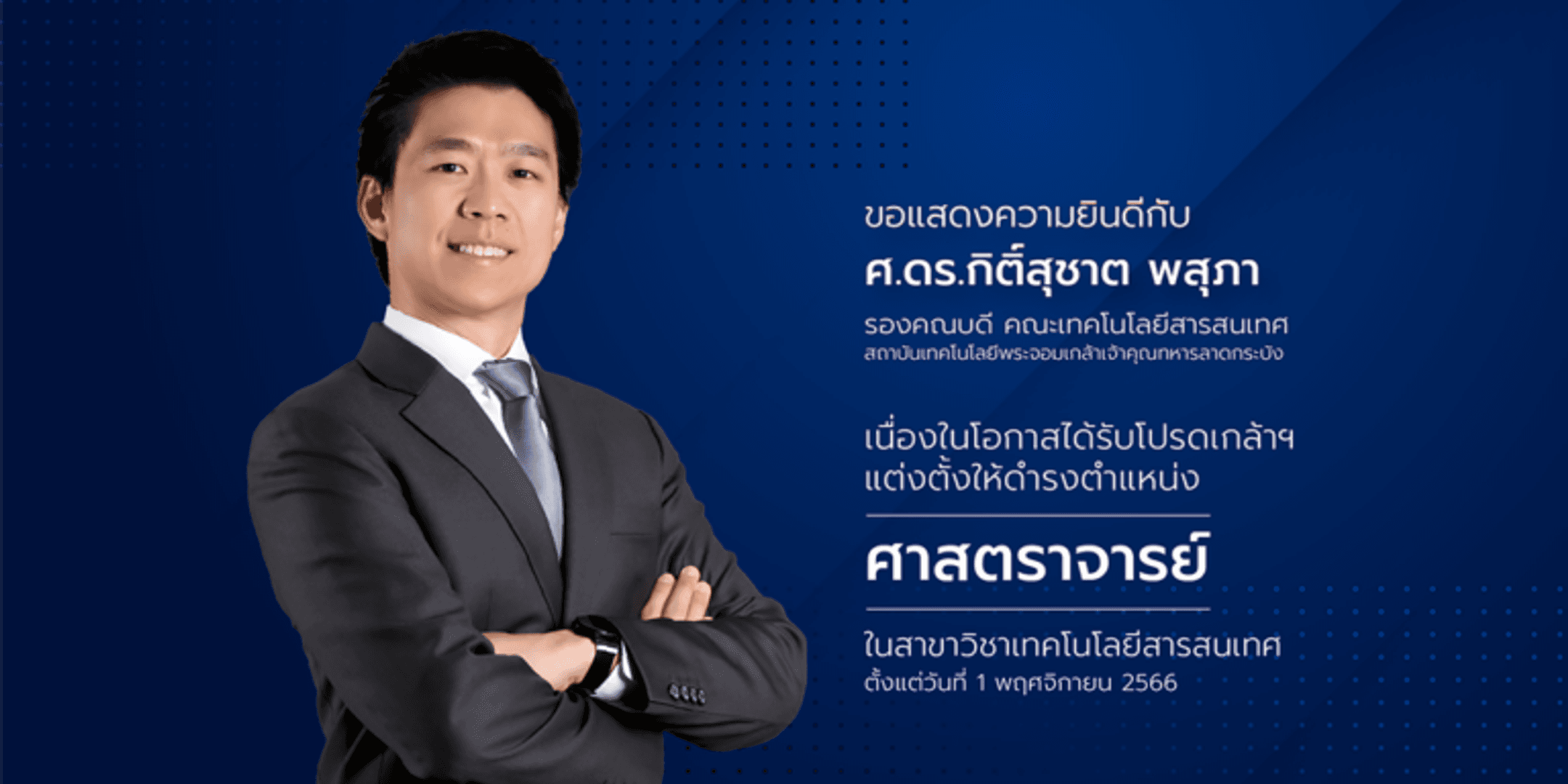 คณะเทคโนโลยีสารสนเทศ สถาบันเทคโนโลยีพระจอมเกล้าเจ้าคุณทหารลาดกระบัง ขอแสดงความยินดีกับ ศาสตราจารย์ ดร.กิติ์สุชาต พสุภา (รองคณบดี คณะเทคโนโลยีสารสนเทศ สจล.) เนื่องในโอกาสได้รับโปรดเกล้าฯ แต่งตั้งให้ดำรงตำแหน่ง “ศาสตราจารย์” ในสาขาวิชาเทคโนโลยีสารสนเทศ ตั้งแต่วันที่ ๑ พฤศจิกายน ๒๕๖๖