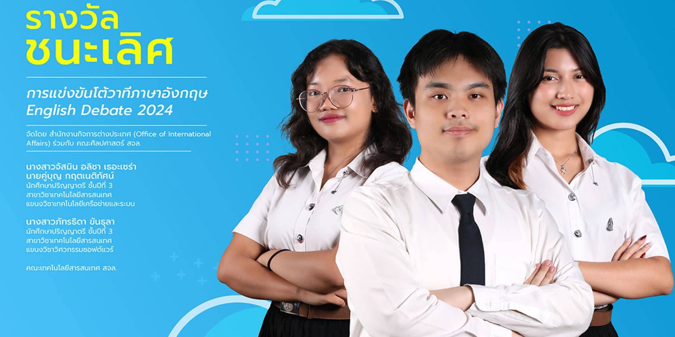 ทีมนักศึกษาระดับปริญญาตรี คณะเทคโนโลยีสารสนเทศ สถาบันเทคโนโลยีพระจอมเกล้าเจ้าคุณทหารลาดกระบัง ได้รับรางวัลชนะเลิศ (The Winner) จากการแข่งขันโต้วาทีภาษาอังกฤษ English Debate 2024 ภายใต้งาน KMITL International Day 2024 ที่จัดขึ้นโดยสำนักงานกิจการต่างประเทศ (Office of International Affairs) ร่วมกับ คณะศิลปศาสตร์ สจล. เมื่อวันที่ 26 กรกฎาคม 2567 ณ ตึก HM คณะวิศวกรรมศาสตร์ สจล. โดยมีวัตถุประสงค์เพื่อเป็นการสนับสนุนและผลักดันให้นักศึกษาได้พัฒนาศักยภาพด้านภาษาอังกฤษ และการทำงานเป็นทีม